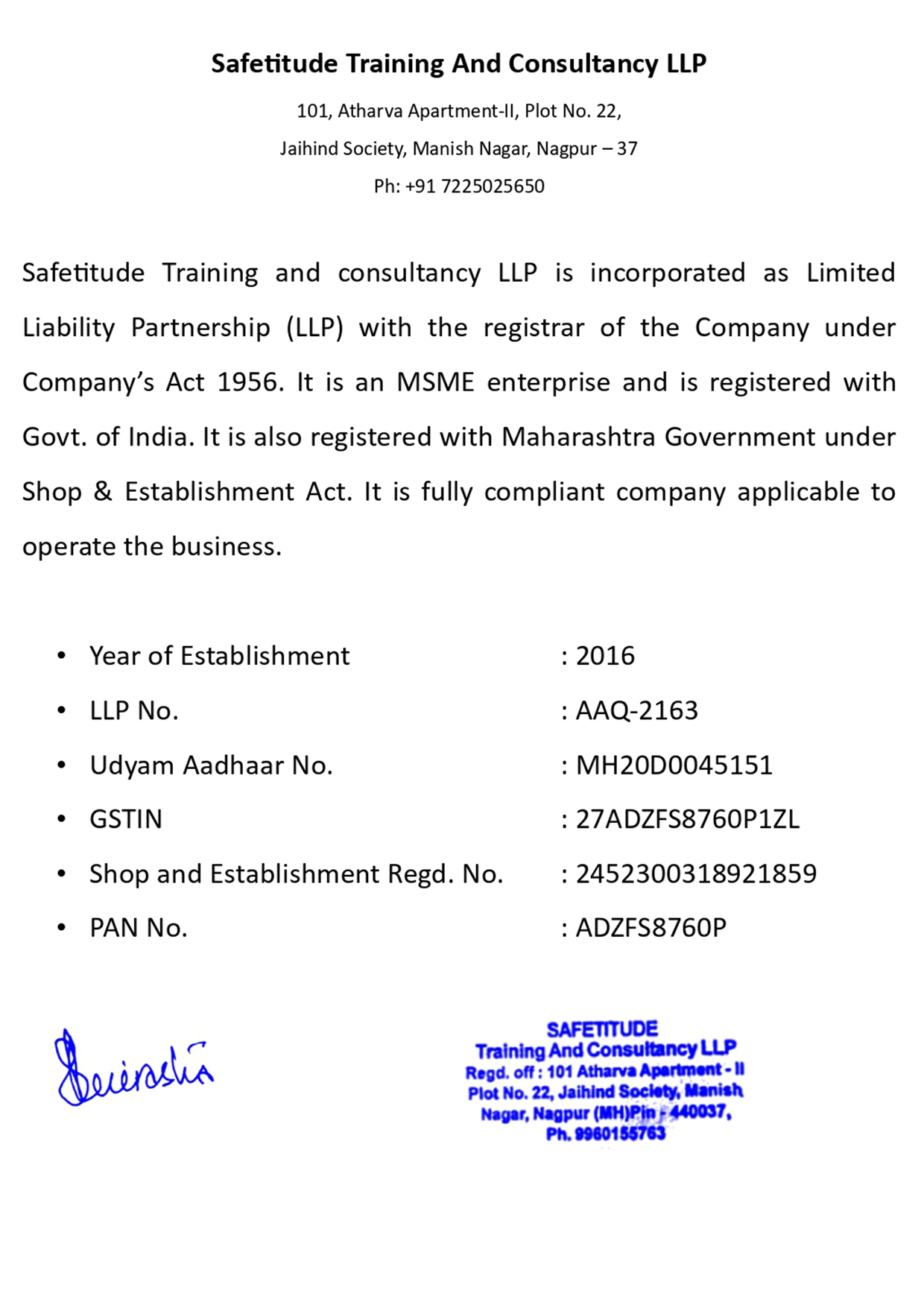 Our service is fully backed up and enriched with the inputs that have been experienced by working closely and meticulously in the core function of Safety, Health, Environment, and Fire Safety areas in big corporates of diverse organizational setups.